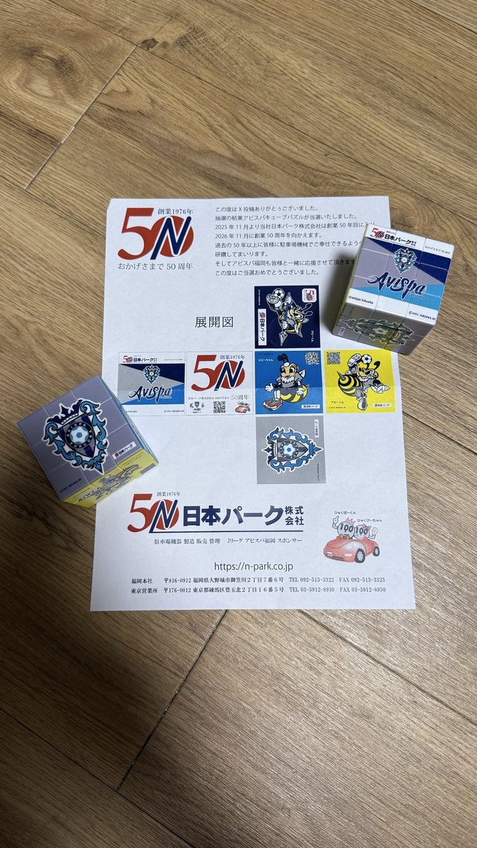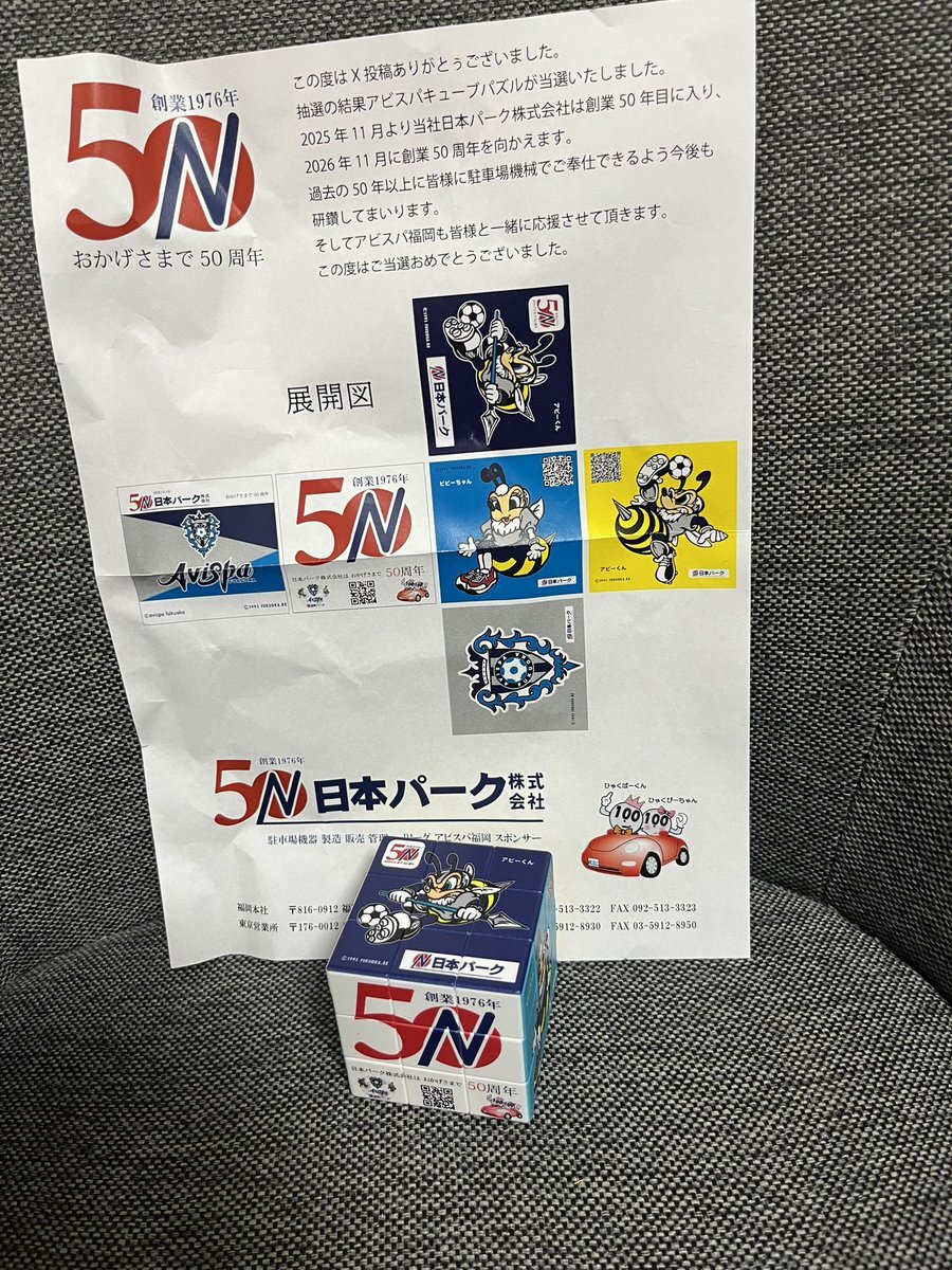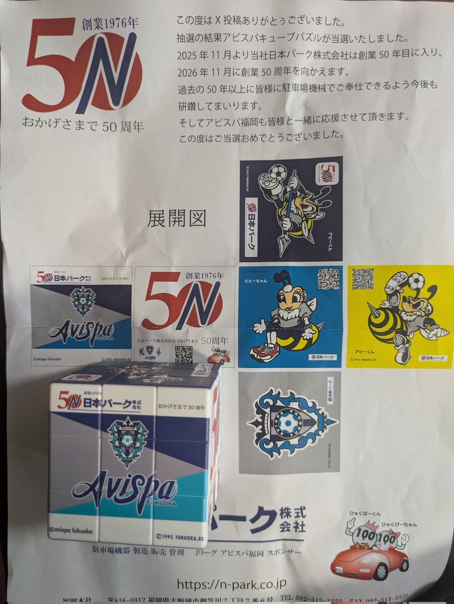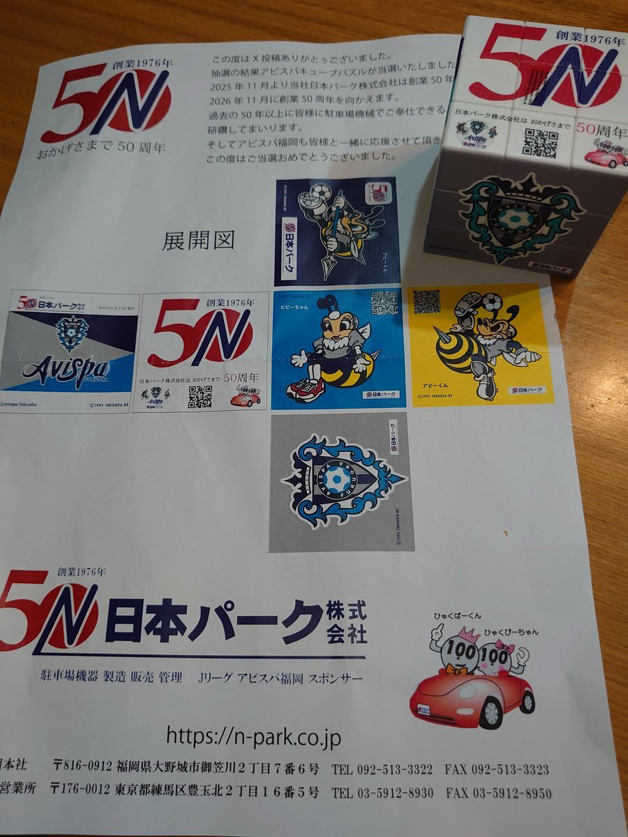 日本パーク様、50周年おめでとうございます✨アビスパキューブパズルをありがとうございました! とっても素敵です。 週末、バラバラにしてチャレンジしてみますね! 元に戻りますように😍 @nihonpark #日本パーク #うちの自慢のスポンサー #アビスパ福岡 pic.x.com/YICD4RaVVn