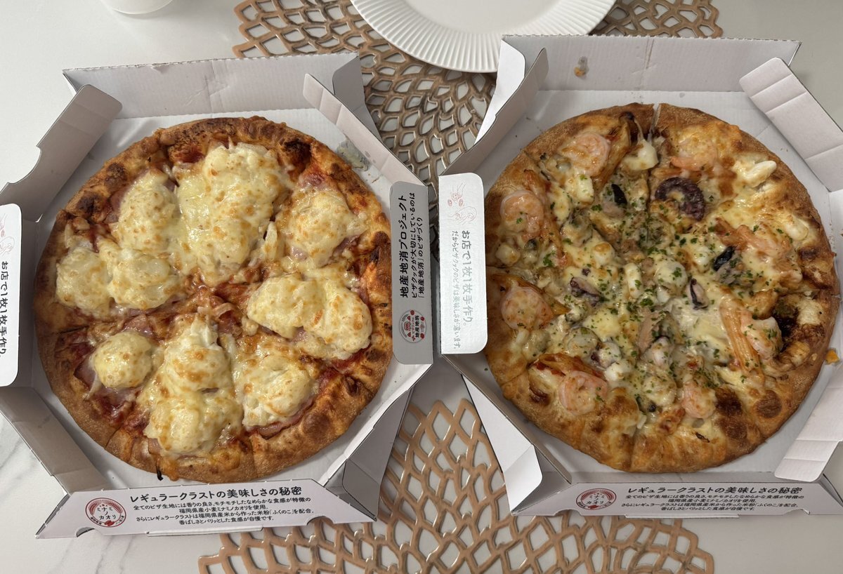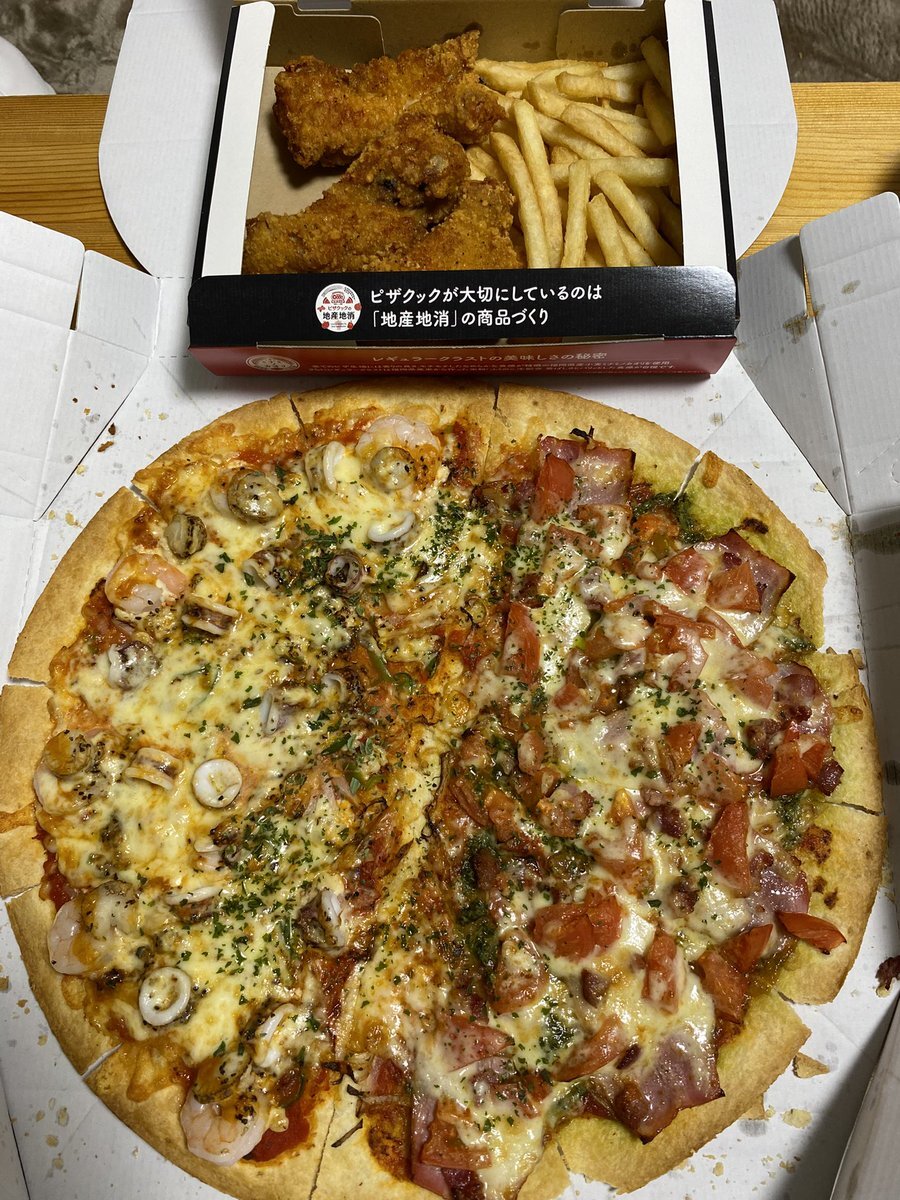 お昼ごはんはピザクック🍕 フォロワーさんが載せてて美味しそうだったので、初めて熱男のシーフード頼んでみた🦐具が全部ぷりっぷり!! #ピザクック #うちの自慢のスポンサー pic.x.com/OD1h99WT9O