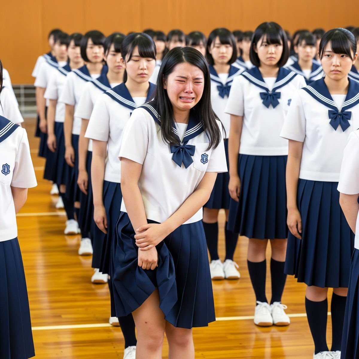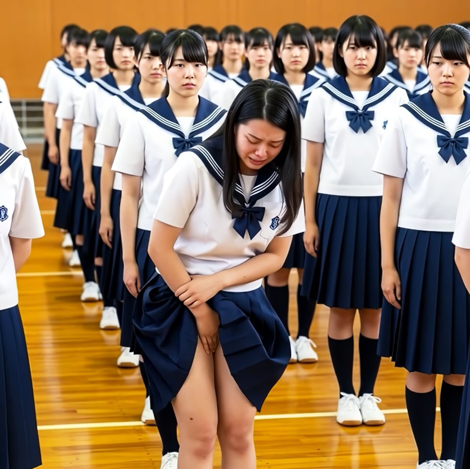 「トイレ行けばいいのにね」 冷たい声が体育館に響く… #AIイラスト #集会 #前押さえ #おしっこ我慢 pic.x.com/JML4gV9yC0 x.com/omokaiikeisei4…
