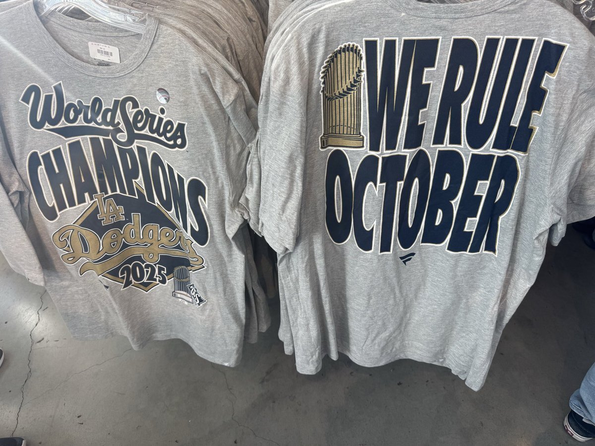 #ドジャースタジアム #トップデッキ#チームストア #ワールドシリーズ連覇 翌日 #WS2025 関連の商品は 昨夜の試合後に選手が 着てた #Tシャツ ワッペン付きの帽子 ペナント のみ 確認できました #お会計 の行列は 端から端までですが 10分くらいです しかしこのTシャツ $80 💸😂 #GoDodgers pic.x.com/PWIucUL8tE x.com/bobyosh/status…