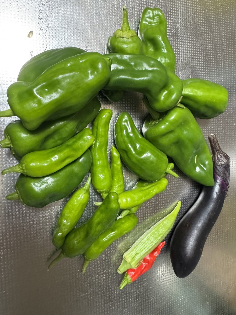『頑張ってる?』 11/10(月)カフェギャラリーごん🦊は16時30分迄営業中🙇‍♀️ 11月だというのに…我が家の庭では無農薬夏野菜がまだ採れる! 特にピーマン🫑ししとうとオクラは季節感がバグってる!? とりあえず青椒肉絲作ってピーマン🫑は消費したw まだトマト🍅が実ってる💦 #夏野菜 #無農薬 #とまと pic.x.com/okZST0g8JW