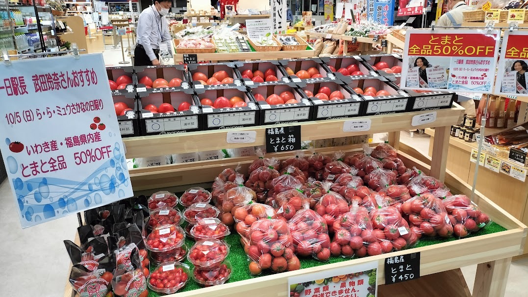 《いわきの物産銘品プラザ》では、いわき産・福島産 とまと🍅全品 50%FF 日本酒・焼酎・ワイン、全品20%OFF🍶🍷でご提供。 一日駅長を務めた、武田玲奈さんの指令です😊 無くなり次第終了です。 #道の駅いわきららミュウ #いわきららミュウ #ららみゅう #とまと #割引 #武田玲奈 #小名浜 #いわき市 pic.x.com/9FHbSAER2W