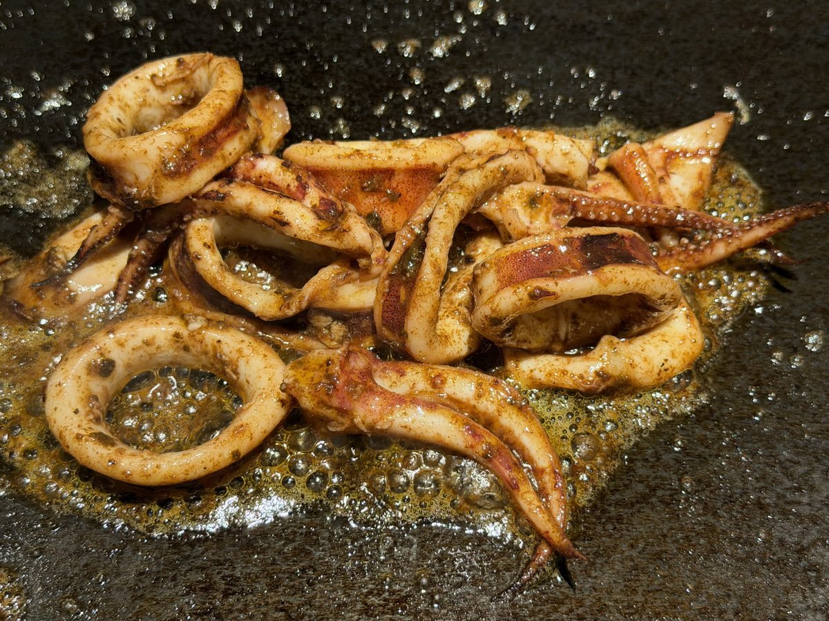 今夜は冷凍たこ焼きを揚げて #もへじ の梅ぽん酢と大根おろしで食べると固く誓う