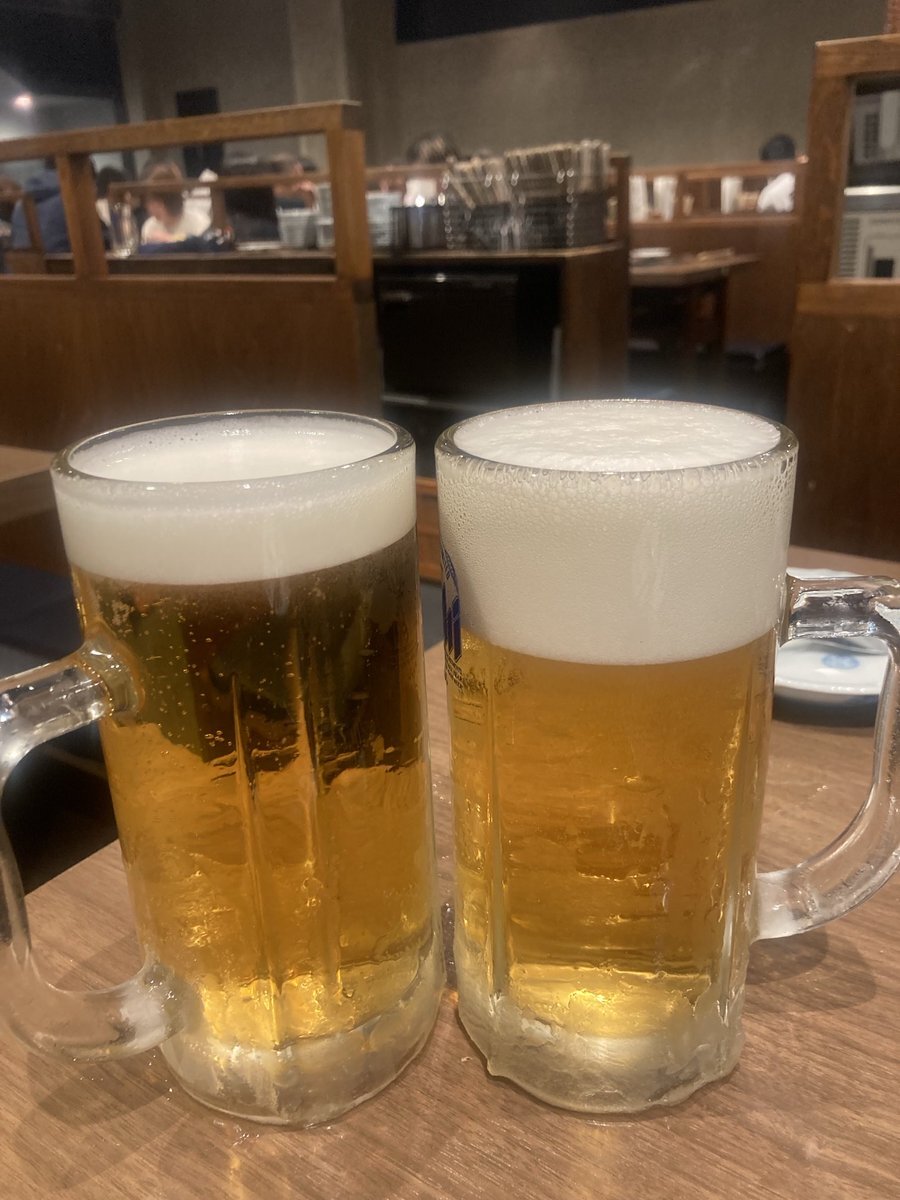 同じ生🍺ビールでもこの泡の差はないよね(汗) もんじゃ美味しかった^_^ #もんじゃ #月島 #もへじ   #生ビール #お好み焼き #焼そば pic.x.com/wJM4OGQPUi