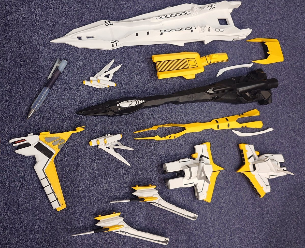 ぺそぺそとエルシオールを組み立てた…! 大きさはボールペンと比較してねw 全長約40cmです ちなみに全部3Dプリント品でABS素材なのでプラモデル用接着剤でくっつくよ 色もプリントそのままなので未塗装です...! これぞ自家製プラモデルよ...! #3Dプリント #ギャラクシーエンジェル #エルシオール pic.x.com/WklxupjHEb