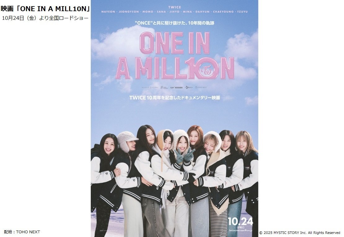 / 公開まであと2日! 映画館に行く準備はOK?🍿 \ #TWICE 韓国デビュー10周年を記念した ドキュメンタリー映画『ONE IN A MILL10N』 🎬10月24日(金)公開 ▼入場者プレゼント第1弾 配布決定! 「ビジュアルシート」(B5サイズ/限定デザイン) 配布期間:10/24(金)~10/31(金)