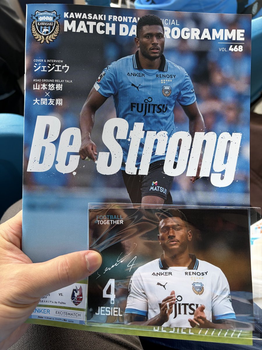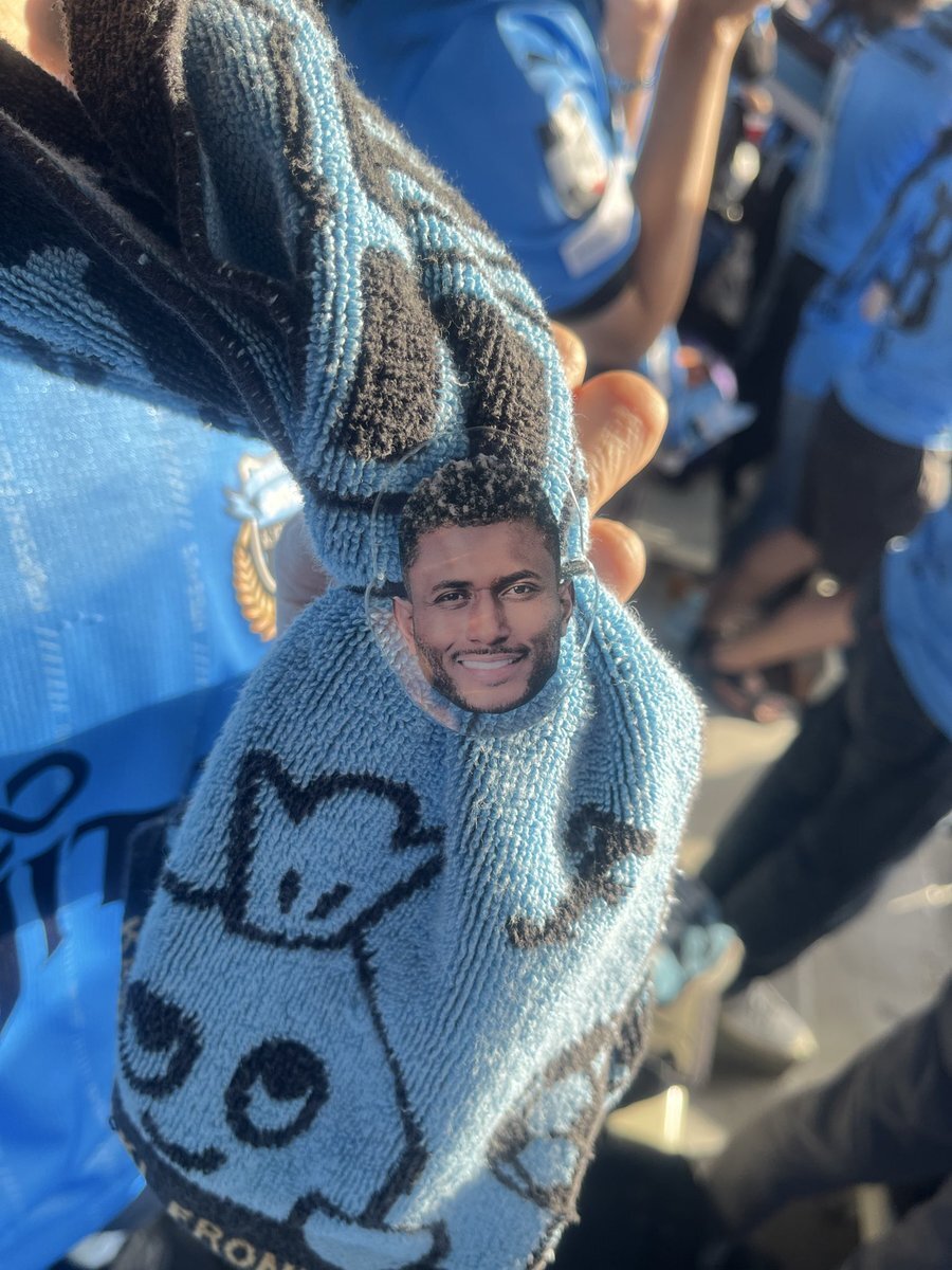 先日の清水戦、このジェジエウさんでタオマフ落とさないように留めてたら、次々点が入ってその度に外して回してまた結んでって結構忙しい前半でした。今日も忙しいのは全然構わないので、ゴールラッシュ&勝点③よろしくお願いします⚽️🐬 #frontale #ジェジエウ pic.x.com/dpGOiWErX4