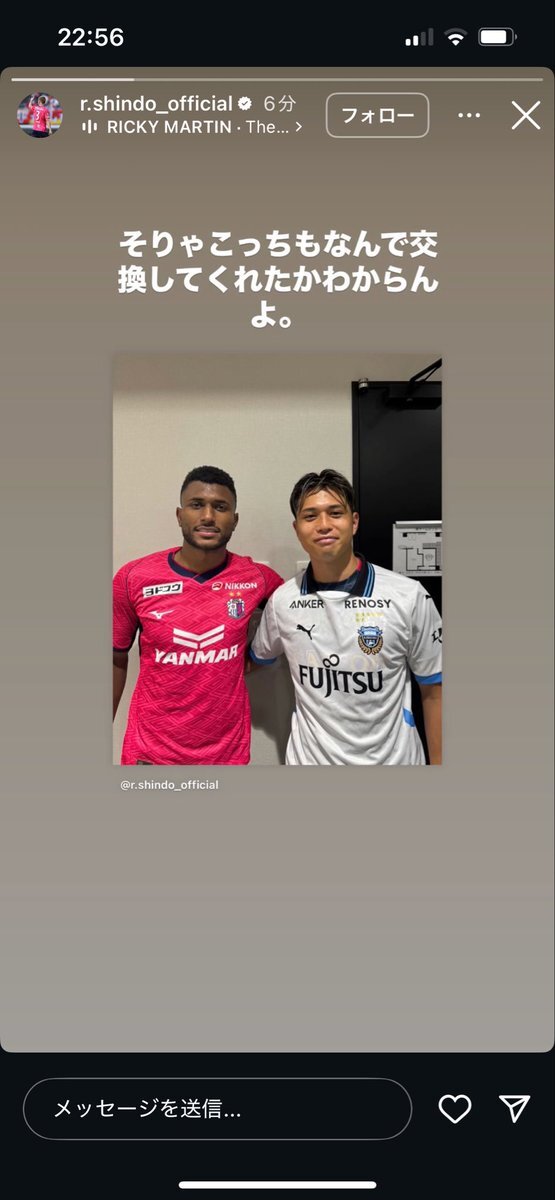 進藤のインスタの件。 2人、この直前にタッチして称え合ってる感じだったんだよなー!(撮れてないけど。 ジェジは、セットプレーでマッチアップして、進藤のこと気に入ったのかもね😌 コネクター登里享平は面白い😂😂😂 #frontale #ジェジエウ #セレッソ大阪 #進藤亮佑 instagram.com/p/DQOmDB2kz-C/… pic.x.com/u8xjTrmMff