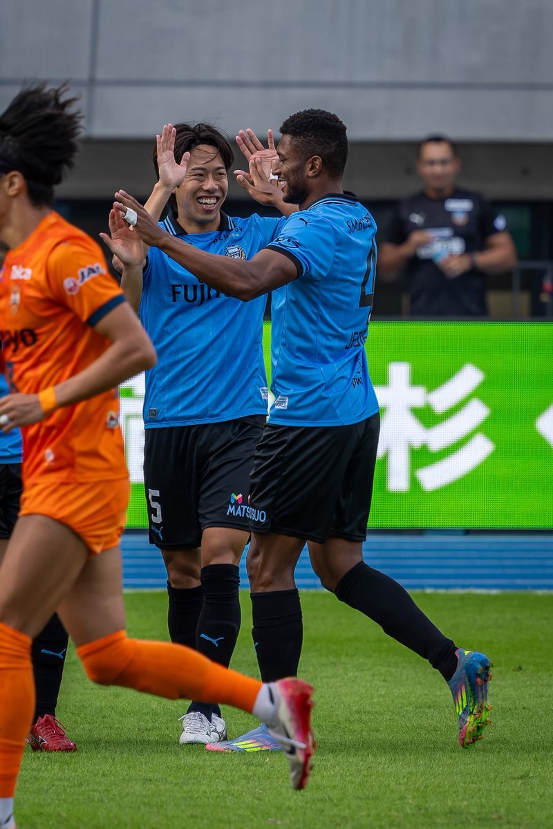 #川崎フロンターレ #ジェジエウ 選手の4枚! 1:堂々の復帰です! 2:ゆりかごパフォーマンス後にみんなから祝福! 3:ジェジエウ選手と5番のCBコンビはとてもいい既視感です! 4:ゴンさんのBIGスマイル! おめでとうございます!!!! pic.x.com/CbwdX9iwb7