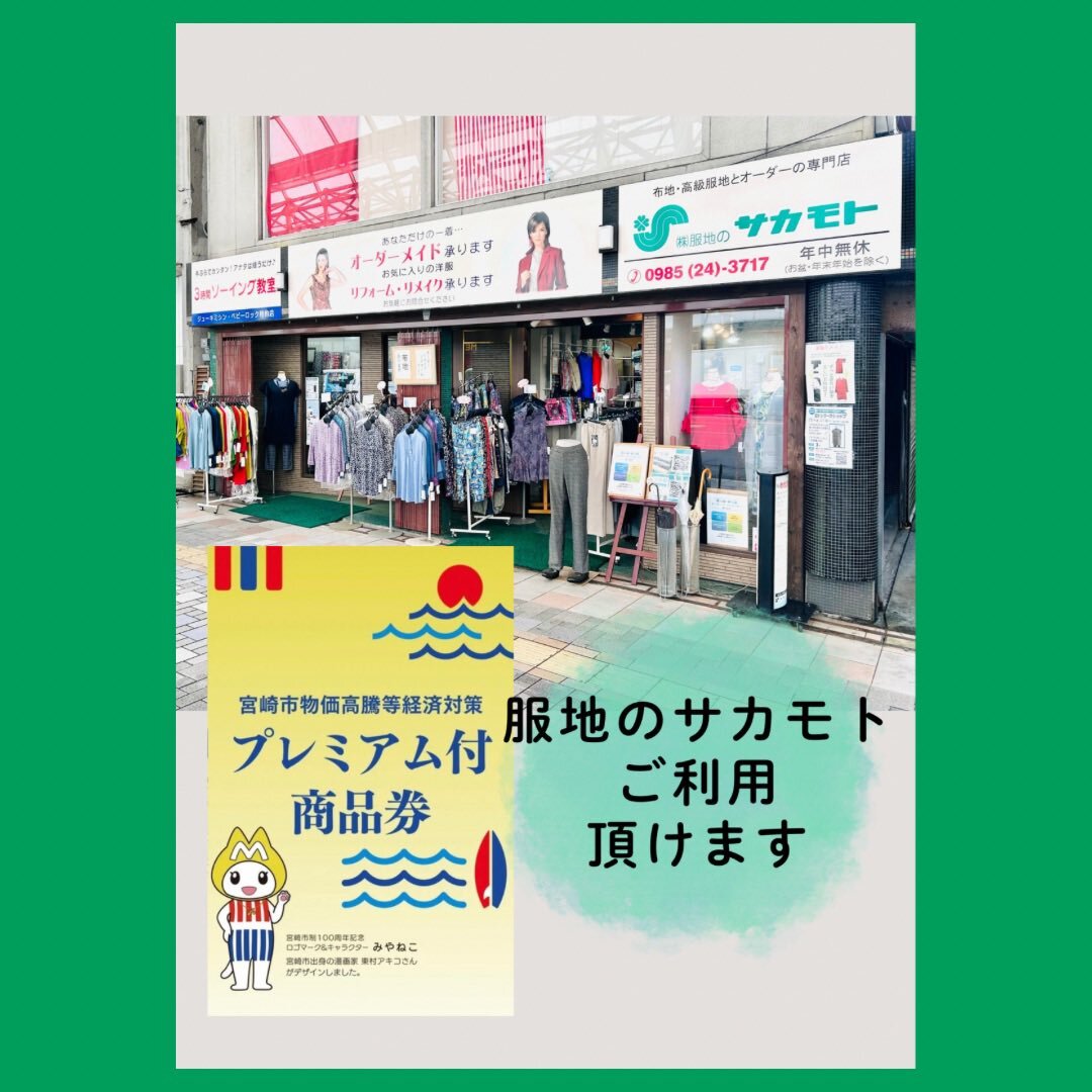 宮崎市のプレミアム付商品券が9月8日(月)から利用開始となりました♪ 服地のサカモトは【共通券】【地元応援券】どちらもご利用頂けます😊 利用期限は11月30日までです📢 #宮崎市 #商品券 #プレミアム付商品券 pic.x.com/bIQ19WZOXK