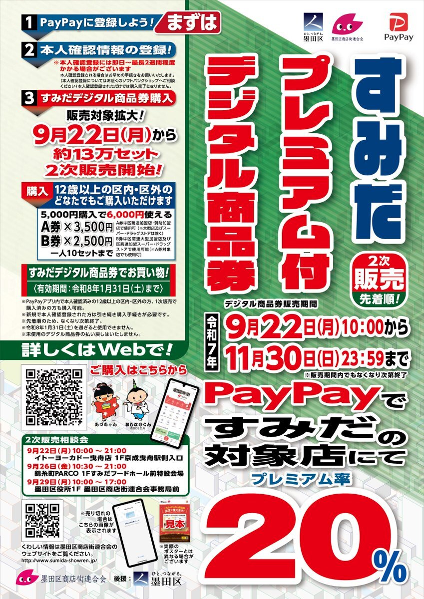 すみだプレミアム付 デジタル商品券 2次販売 📷sumida-showren.jp/event/721/ #paypay #プレミアム付商品券 #墨田区 #両国 #酒屋 #2次販売 pic.x.com/ExviWgYOFl