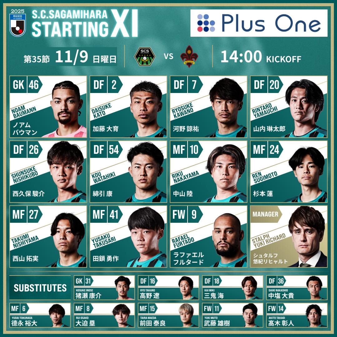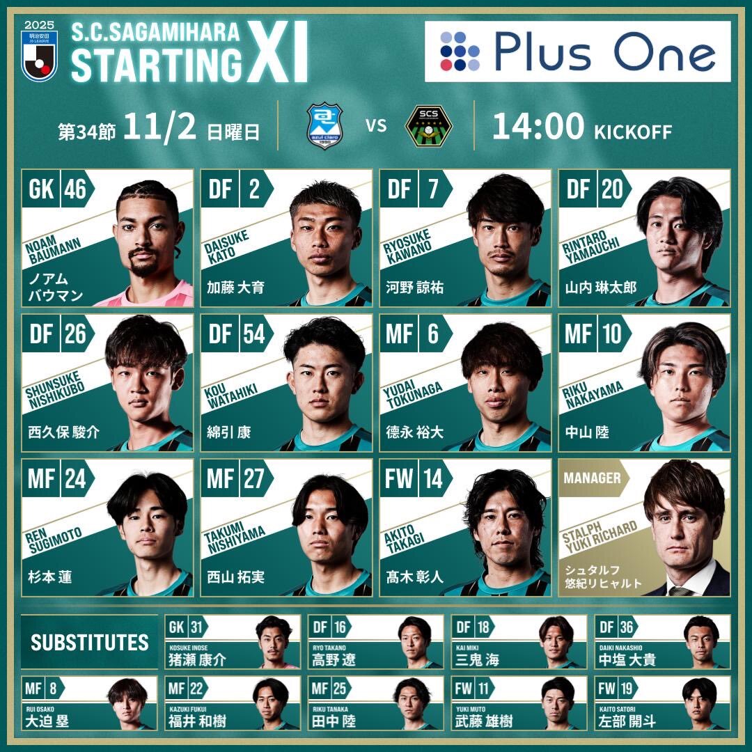 ◤◢◤ Today's starting11 ◢◤◢ 👑明治安田J3リーグ 第34節 2025.11.2 sun vs #アスルクラロ沼津 🕔14:00kickoff 🏟️ 愛鷹広域公園多目的競技場 ✍️ jleague.jp/sp/match/j3/20… #SC相模原 || #SCS