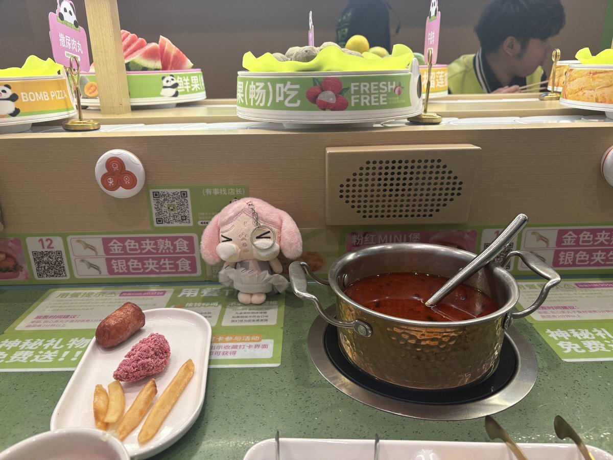 回転火鍋を初めて召し上がった😇一人一つの鍋で更にデザートも野菜もお肉も飲み物もフルーツも食べれて、日本の麻辣汤くらいって安すぎて驚く🫢 日本にどっかしらあるのかな? おやすみなさい⭐ #回転火鍋 #上海 pic.x.com/q5Y19EqWRT