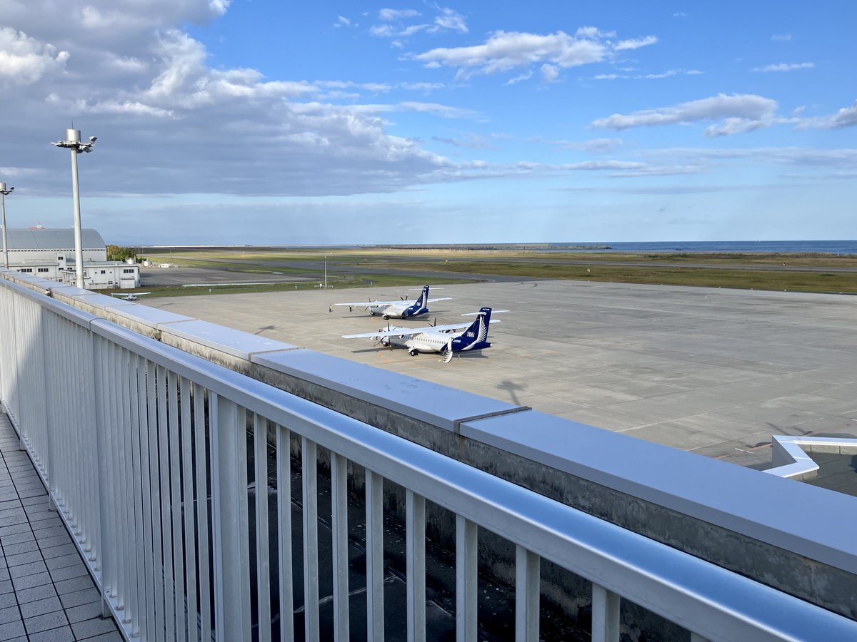 おはようございます。新潟空港屋上デッキなう。今日は新潟空港でセントレアのイベント開催です。お近くの方はぜひお越しください。新潟空港屋上は本日11/2無料開放です。#イマソラ