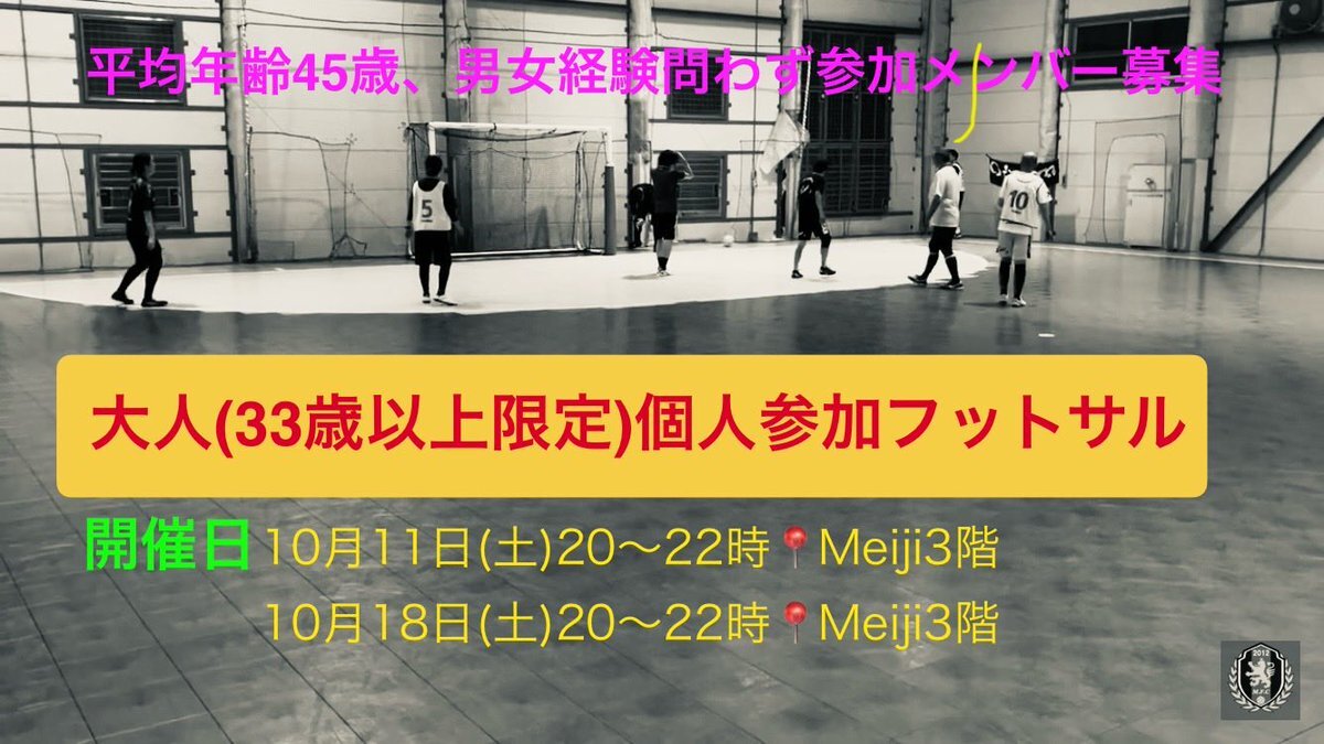 来週も是非🤗🤗 【参加者情報】 第305回 10月11日(土) 20〜22時 残り0名🈵 第306回 10月18日(土) 20〜22時 残り14名🈳 ★10月25日(土)は施設閉館の為 お休みさせて頂きます。 #フットサル #Meijiフットサル #平均年齢45歳 #個人参加