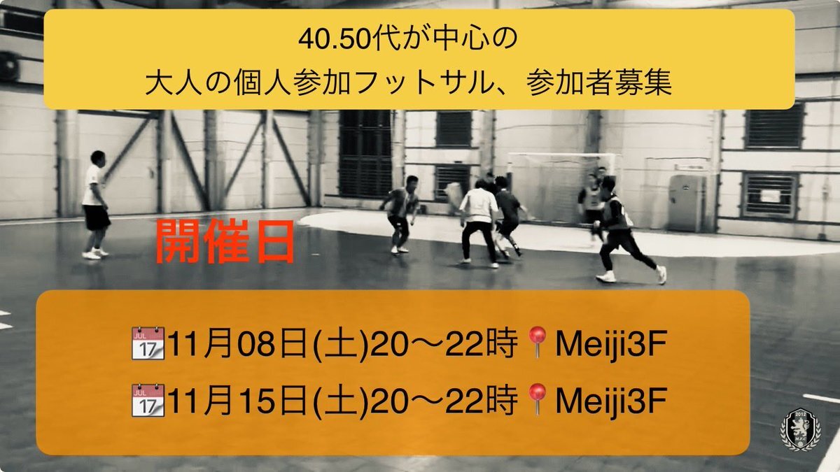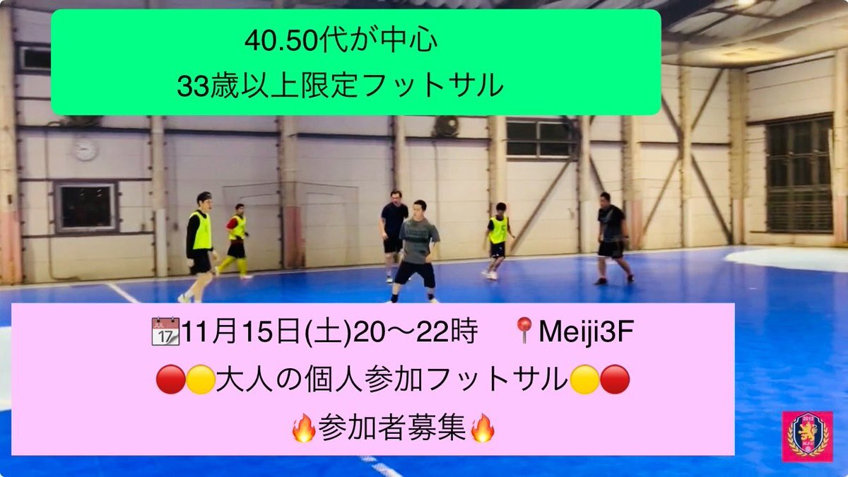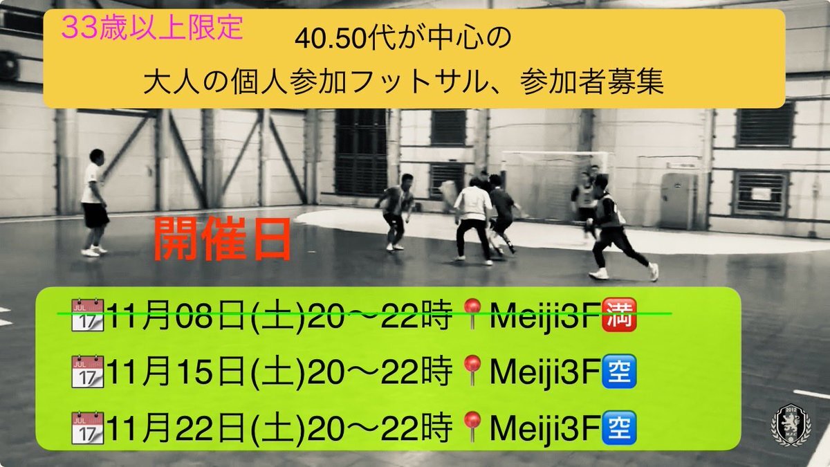 11/15も埋まり早そうです、 ※お早めに🤗 【参加者情報】 第309回 11月15日(土) 20〜22時 残り4名🈳 第310回 11月22日(土) 20〜22時 残り14名🈳 第311回 11月29日(土) 20〜22時 11/13より受付 予告:来年は1/3(土)14時開催 #フットサル #Meijiフットサル #平均年齢45歳 #個人参加