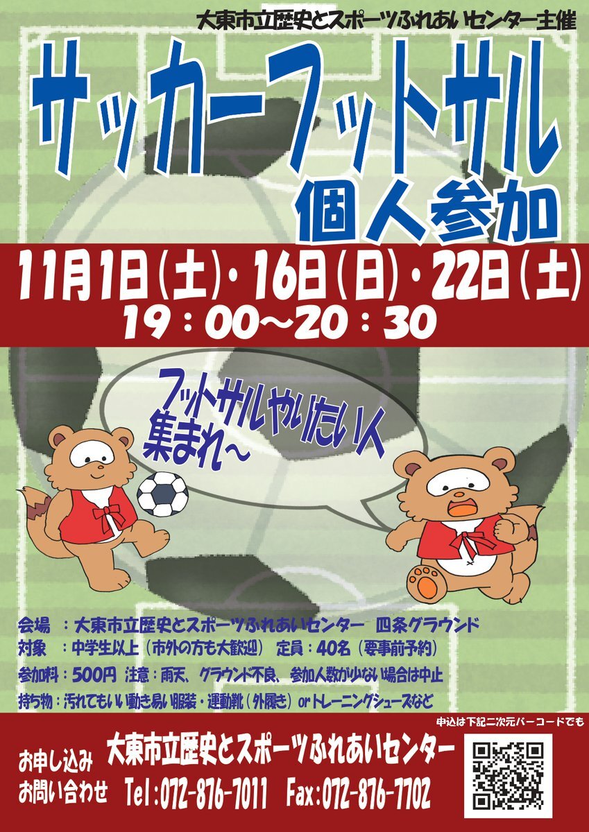 11月22日(土)19:00~ ⚽ 『フットサル個人参加』開催😆 参加費500円 フットサルをワンコインで楽しめる! 詳細:rekisupo.com 予約問合せ 072-876-7011 (市外の方も参加可) または申込フォームはこちら⇒forms.gle/HDRo7Dt7CraDrc… #大阪 #フットサル #大東市 #スポーツ #個人参加 pic.x.com/EmSegQ78qw