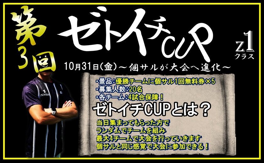 #個人参加フットサル大会 『ゼトイチCUP』開催❗️ 10/31(金)21〜23時 labola.jp/r/event/show/2… ☝️ご予約はコチラから😄 #個サル が #大会 に進化した #個人参加 #フットサル大会 で 個サルとは違う楽しさを味わおう🔥 #フットサル #個人参加大会 #フットサル場 #本八幡 #市川市 #コルトンプラザ pic.x.com/tX7X7j8Cms
