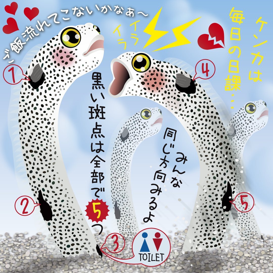 こんにちは。みきみつです。 日本原産の犬「狆」に似ていることに由来している チンアナゴ 和名は「狆穴子」 臆病で神経質なため、あまり泳がないよ 巣穴は自分の全長の約2倍ほどの深さがあり 体から出る特別な粘液で 砂をセメントのように固めているよ #動物好きな人と繋がりたい #イラスト pic.x.com/tQdKLU9gry