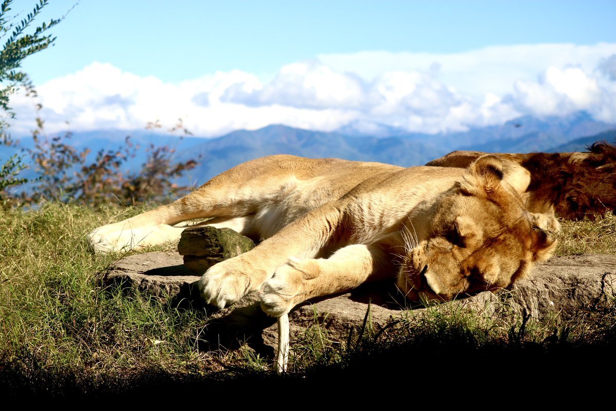 おは (ะ ˙Ⱉ˙ ะ) ガォー 2025-11-05(水) ダイナミックなお昼寝🦁💤 山脈をバックに気持ち良さそうに寝ている『つむぎ♀』 ガラス越しだったけど、ライオンのデカさが分かる距離感でワクワクしちゃいました😆 #キリトリセカイ #茶臼山動物園 #ライオン #動物好きな人と繋がりたい pic.x.com/VGhLgb70Iw