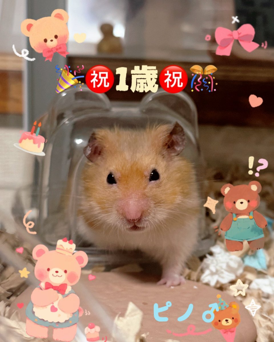 11/11我が家のプリンス🤴ピノさん、1歳になりました♡ ピノしゃんおめでとう🍾㊗️🎈 元気に長〜く一緒にいようね♡♡ #ハムスター #ハムスターのいる暮らし #ハムスター好きな人と繋がりたい #ゴールデンハムスター #動物好きな人と繋がりたい pic.x.com/GsVfNw5djS
