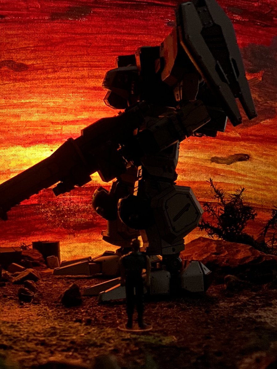 【#箱絵を真似てみよう】 1980年1/100旧キットの箱絵で 1995年MG版1/100で真似たものです。数年前に載せた画像をコントラストとか画像処理し直しました😄 イラストの右足の再現は無理があります😅 #公式画像とうちの子並べようぜ #原作の隣に自分の作品を貼る #ガンプラ #機動戦士ガンダム pic.x.com/BNtfoBGE6X