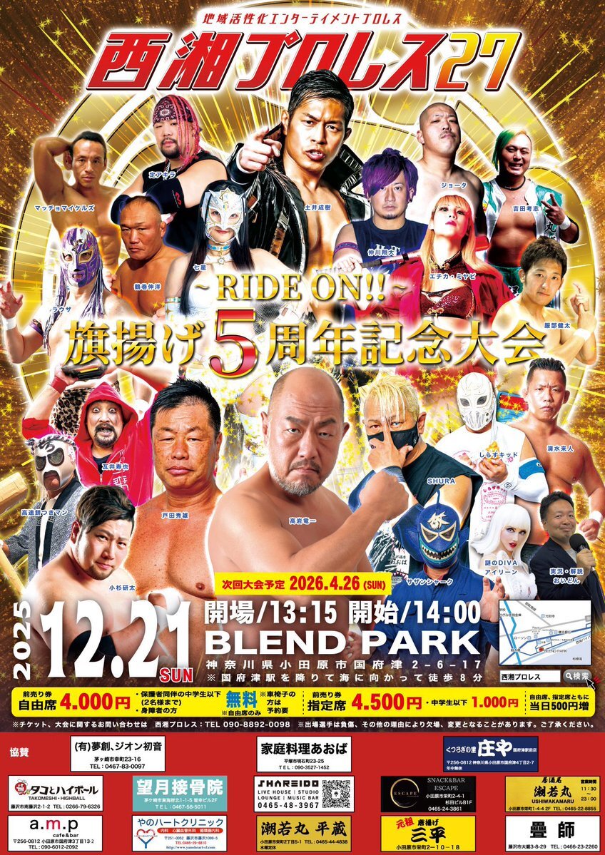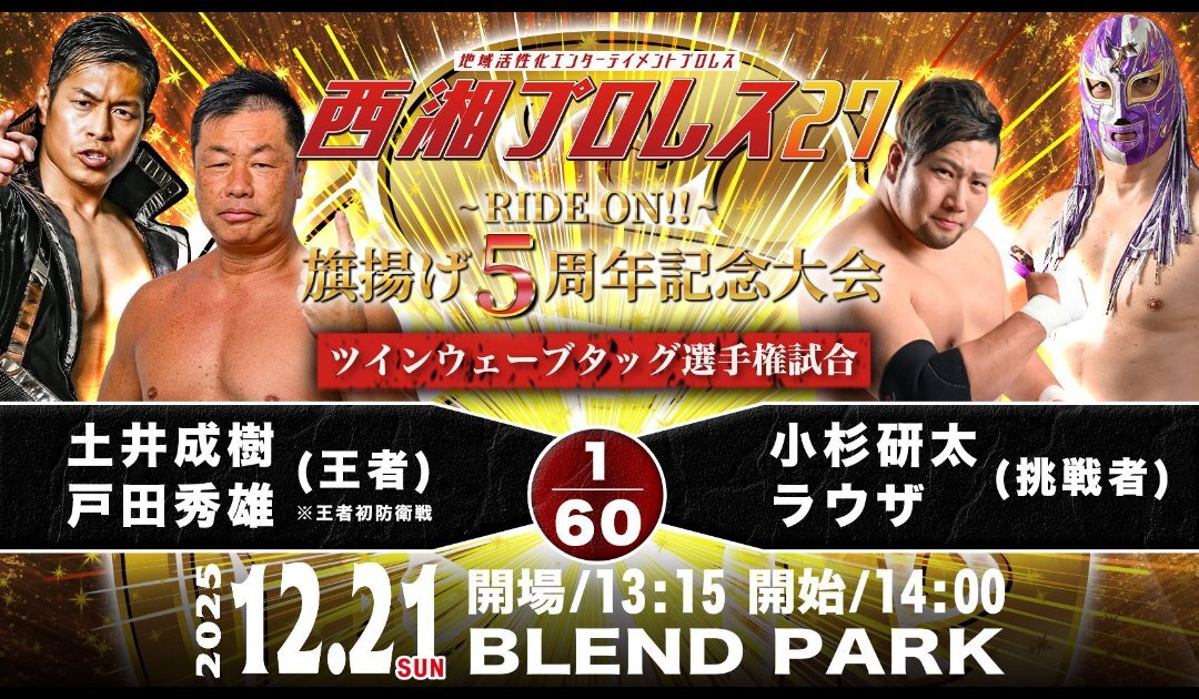 12/21は西湘プロレスに参戦‼️ ラウザと組んで、ツインウェーブタッグのタイトルマッチに挑戦です。 前回開催のトーナメントにエントリーされてなくてウズウズしてたんだ🔥 西湘プロレス旗揚げ5周年記念大会! 勝つしかないだろ!! #西湘プロレス #ツインウェーブ #柳ケ瀬プロレス