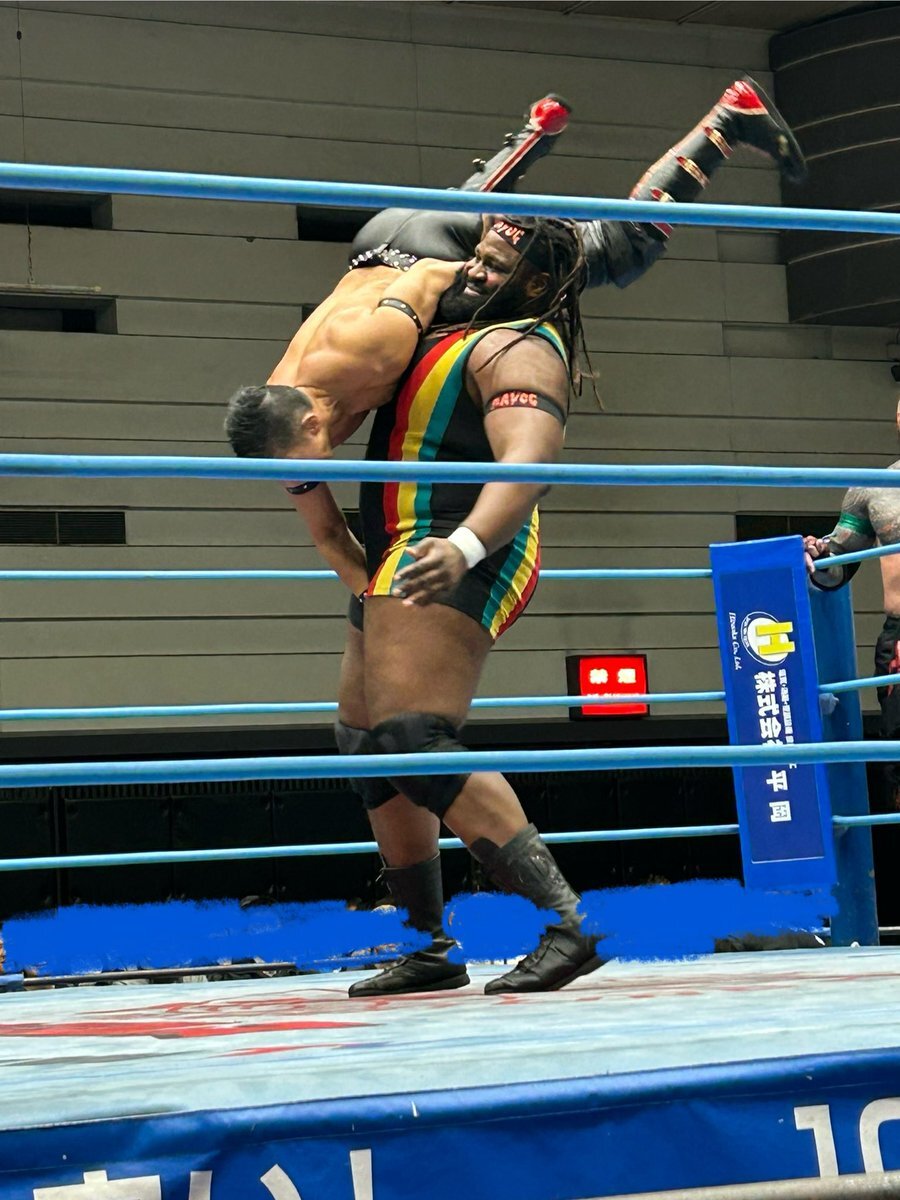 土井ちゃんが頑張ってオデちゃんを持ち上げようとしたけど、逆に持ち上げられた! #全日本プロレス #ajpw #エディオンアリーナ #最強タッグ2025 #12月6日 #土井成樹 #オデッセイ #Odyssey pic.x.com/VaHQ9HW2Hd