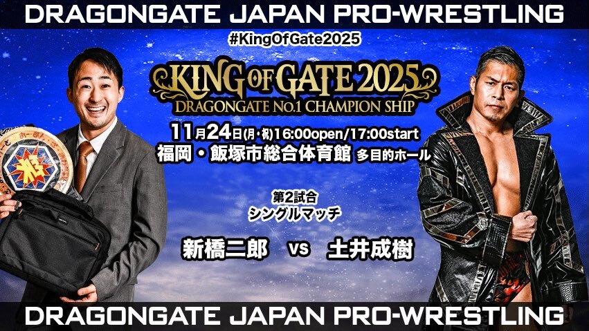【11/24 #飯塚 大会試合結果速報】 第2試合:シングルマッチ #新橋二郎 ✖️ vs #土井成樹 ⭕️ (10分39秒: 新橋のお弁当攻撃が誤爆→体固め) #DRAGONGATE #ProWrestling #KINGofGate2025 pic.x.com/SoP0byMNpA