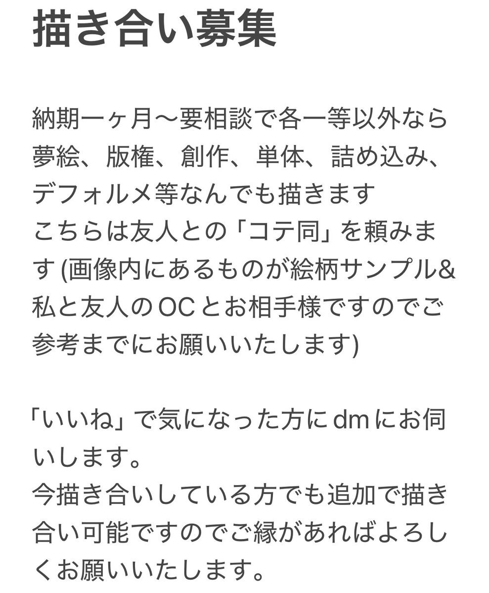 @1 #描き合い募集 #描き合い #夢絵描き合い #夢絵描き合い募集 #作品交換 描き合い募集してます! 夢小説は界隈履修済みの方のみ検討いたします。 気軽にお声掛けください🌟 リプライは引用元へお願い致します🎀 x.com/rosa_matthiola…