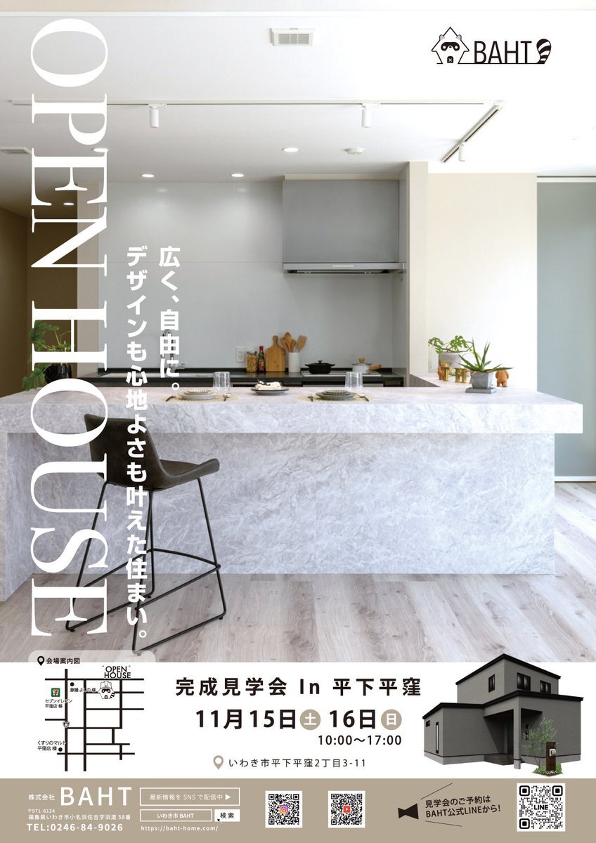 BAHT完成見学会【2週連続】開催決定👏 / まずは1週目のご案内です٩( ᐛ )و \ 予約方法、詳細はInstagramをご覧ください☺️ たくさんのご来場お待ちしております✨ #いわき市 #完成見学会 #たぬきがつくる家 pic.x.com/IIzTQNrpXk