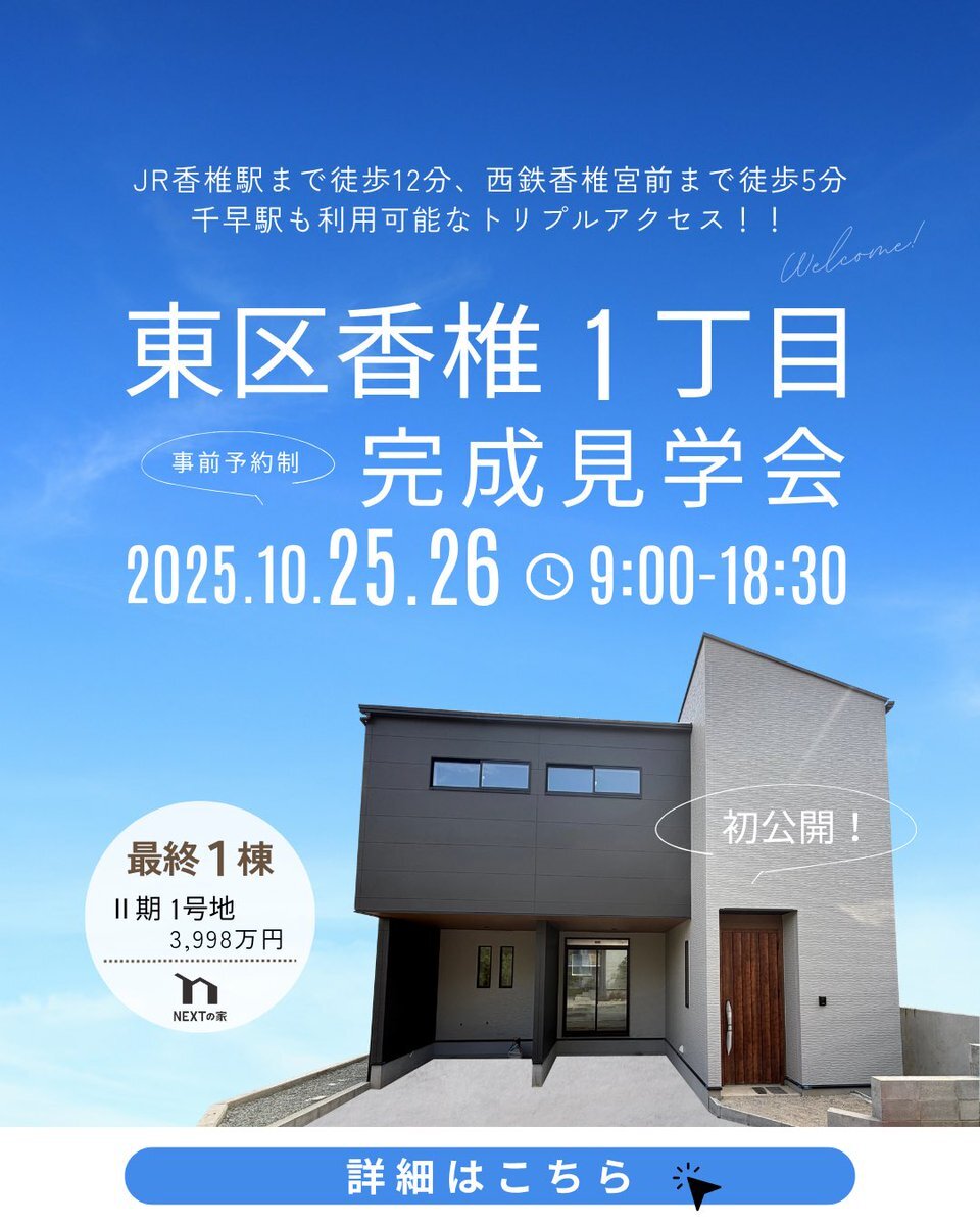 ネクストの家では、明日、明後日で人気の東区香椎にて、完成見学会を開催します! 初公開のお家です。是非ご参加下さい♪ next-life-design.com/event/24177/ #ネクストの家 #ネクストライフデザイン #完成見学会 #香椎 pic.x.com/IcNbVb2M1j