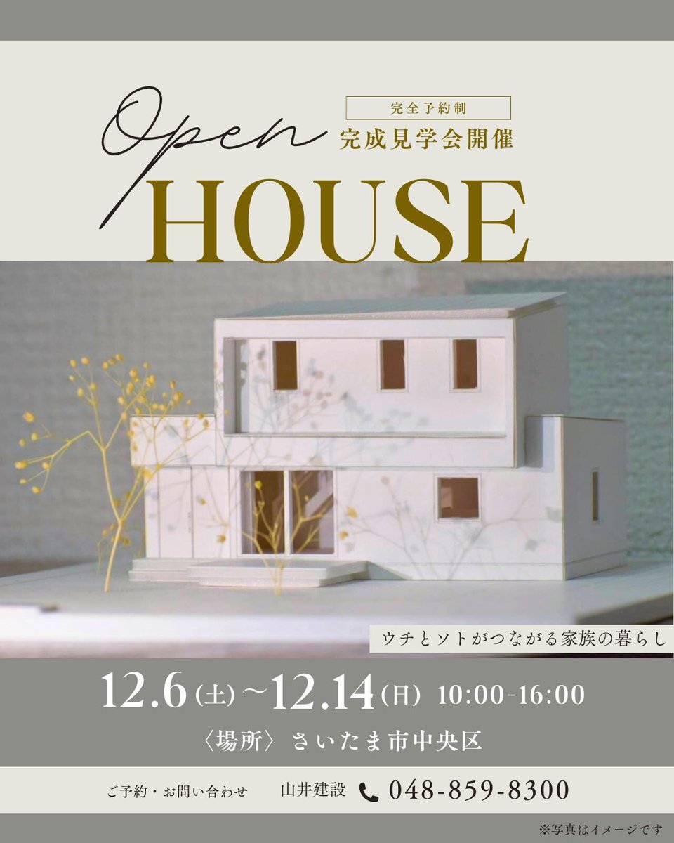\ OPEN HOUSE / 28坪のウチとソトがつながる家族の暮らし 日程:12月6日(土)7(日),13日(土)14日(日) 時間:10:00~16:00※事前予約制 場所:さいたま市中央区 ✅周りの視線を気にせず、開放的な空間で暮らしたい ✅お庭とウッドデッキでリラックスしたい #さいたま市中央区 #完成見学会 pic.x.com/tjCESUGFFm
