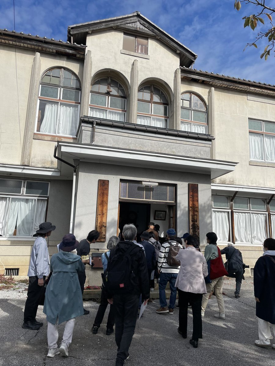 成安造形大学の授業で近隣の古い村を調査 古民家をリノベーションする課題ですが、様々な作家さんたちが集まってきていておもしろい地域です 仏師の方の説明を真剣に聞く学生たちの図 #成安造形大学 #空間デザイン領域 #住環境デザインコース seian.ac.jp pic.x.com/miIxPtmROp