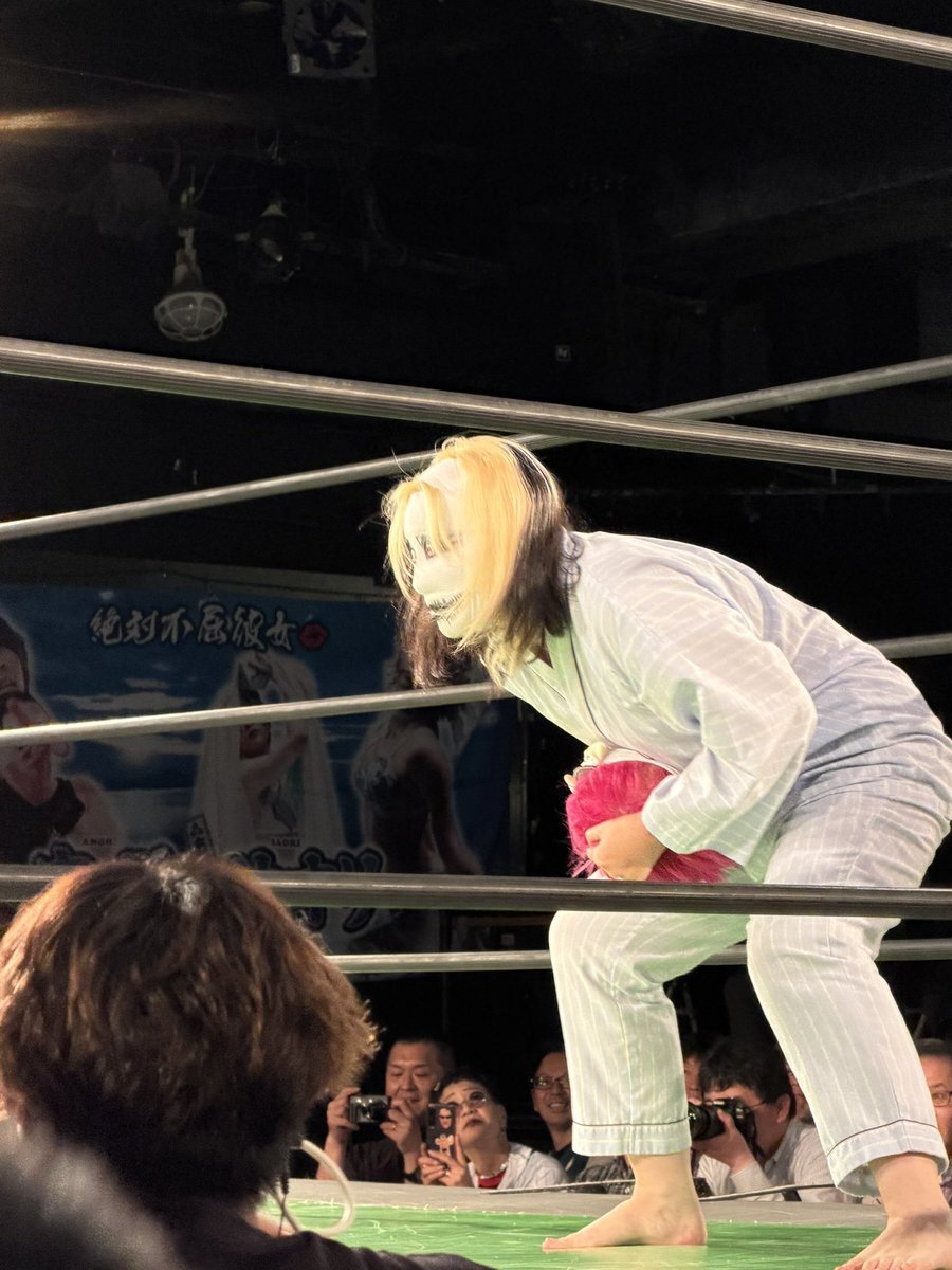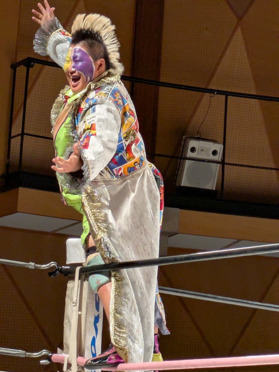 チサコさんのポーズを真似して何やら言ってた乱丸さん。もう試合中ずっと笑わされました😂 #DASH・チサコ #救世忍者乱丸 #SENJO pic.x.com/mdTGfN3Ji6
