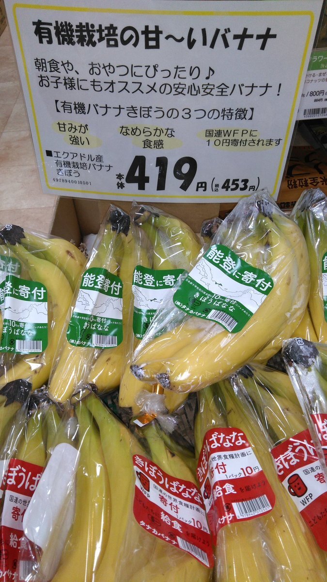 【商品入荷】   エクアドル産 有機栽培 きぼうバナナ入荷しました。 このバナナは大きくて なめらか、クリーミーで美味しい 人気のバナナです🍌 おやつにいかがですか😊 #タナカバナナ #WFP #有機栽培 #自然食品 #奈良 #高の原 #すずらん館 #ドラッグストア pic.x.com/wRBvD9BEDL