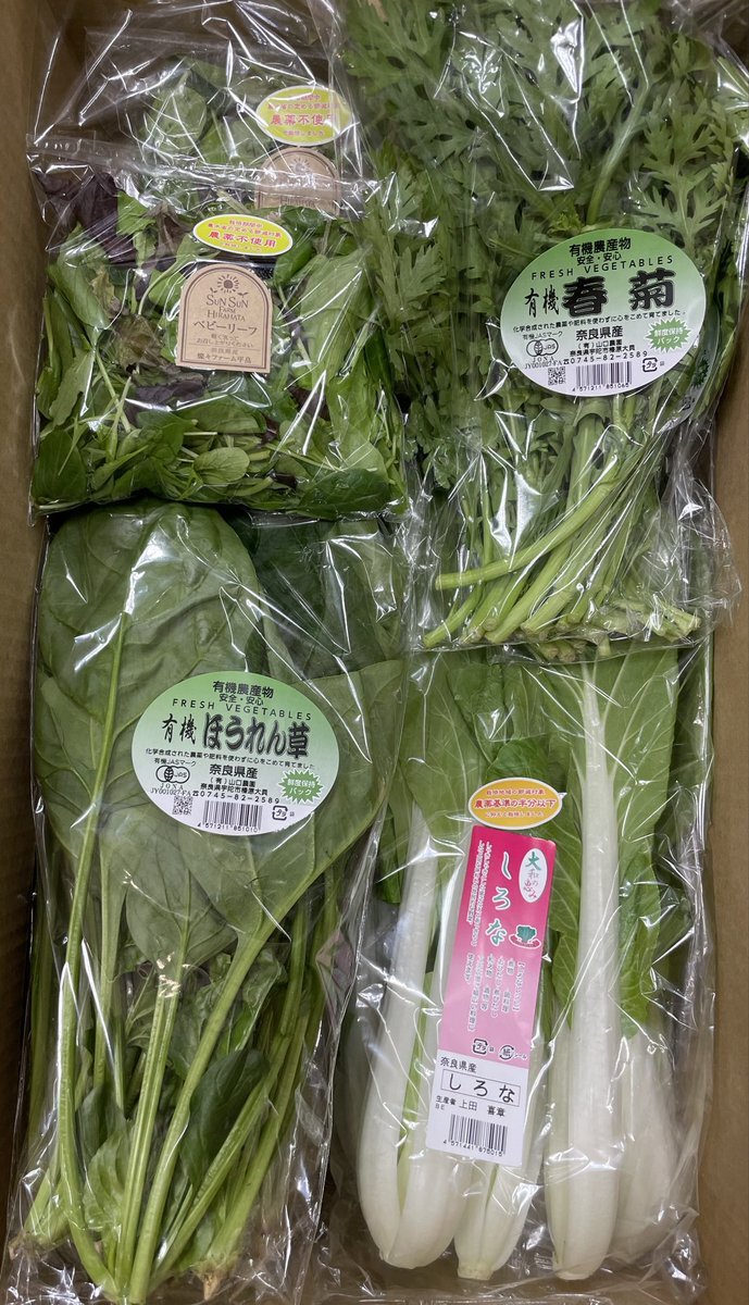 【新鮮野菜入荷】 本日の有機栽培や特別栽培の 新鮮な野菜が入荷しました! 奈良県産 有機こまつ菜 奈良県産 有機大根  大きな大根が入っていますよ😊 #有機栽培 #特別栽培 #自然食品 #奈良 #高の原 #すずらん館 #ドラッグストア pic.x.com/aFcyACt5jU