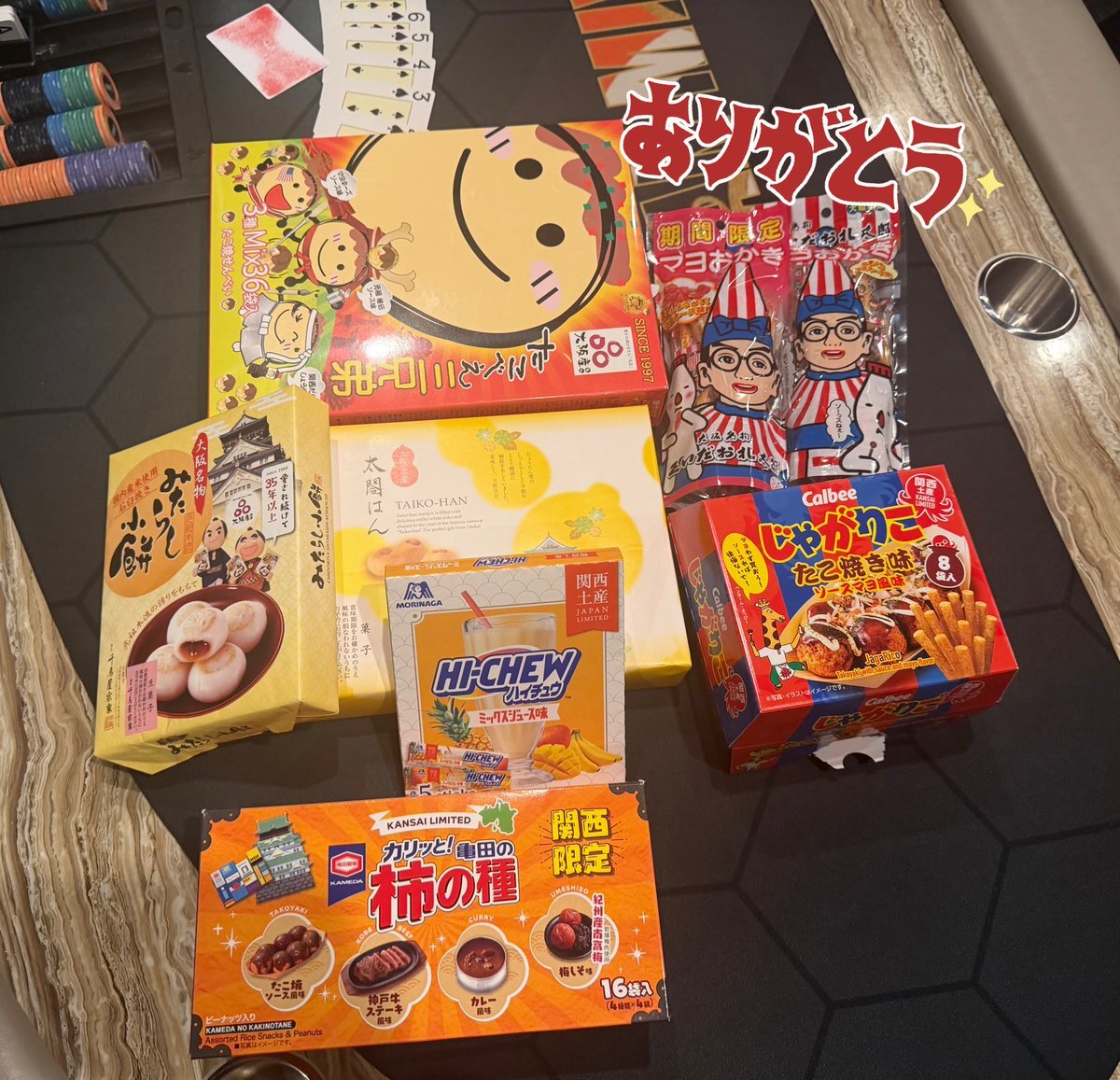 ひろポン様より大阪お土産の差し入れいただきました! ありがとうございますദ്ദി ˃ ᵕ ˂ ) #横須賀中央 #ポーカー pic.x.com/7Bbv3AA25M