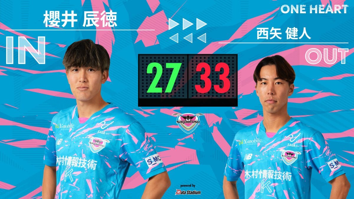 選手交代 後半17分 ⏩IN #櫻井辰徳 ⏪OUT #西矢健人 #DAZN でライブ配信 ➡️prf.hn/click/camref:1… #sagantosu #ONEHEART #Jリーグ #Jleague pic.x.com/mf9w342C0D