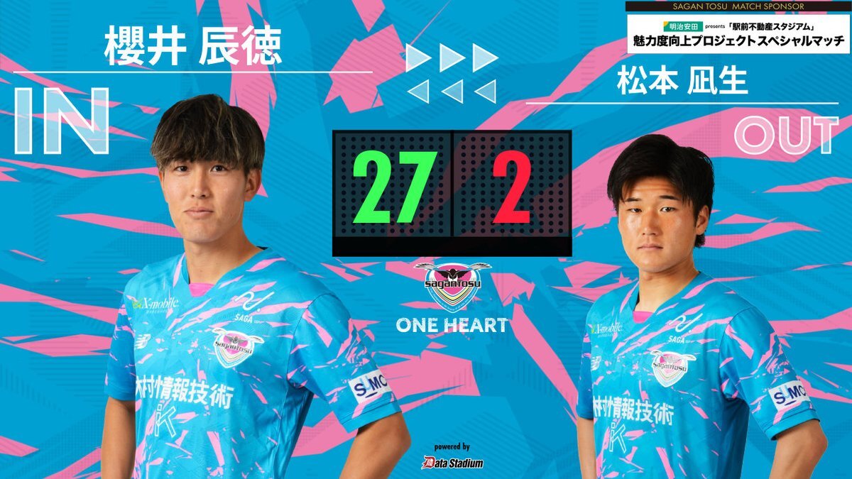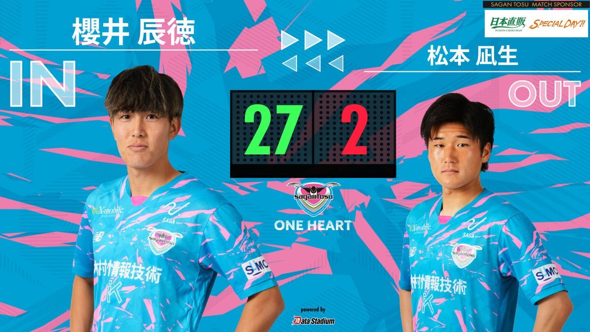 選手交代 後半33分 ⏩IN #櫻井辰徳 ⏪OUT #松本凪生 #DAZN でライブ配信 ➡️prf.hn/click/camref:1… #sagantosu #ONEHEART #Jリーグ #Jleague pic.x.com/TepusNTzwq
