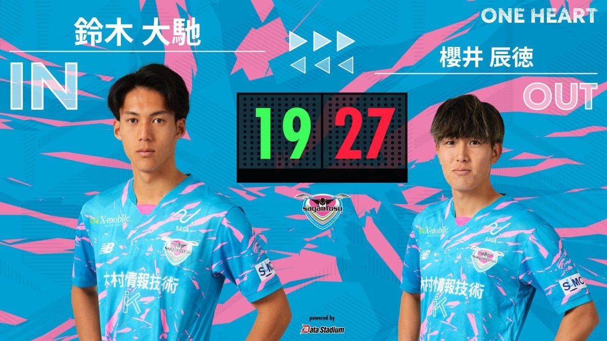 選手交代 後半11分 ⏩IN #鈴木大馳 ⏪OUT #櫻井辰徳 #DAZN でライブ配信 ➡️prf.hn/click/camref:1… #sagantosu #ONEHEART #Jリーグ #Jleague pic.x.com/MIJdFhhY17