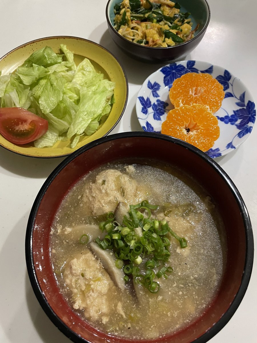 鶏だんごときのこのみぞれ煮 ニラカニ玉 サラダ みかん 今日はみぞれ煮込みを作りました☺️ 大根一本をフードプロセッサーでおろして。残ったのは冷凍で👍 冷凍出来るのはあり有難い🙌 ご馳走様でした🙏 #おうちごはん #晩ご飯 #料理 #地味ごはん #映えないごはん #毎日のごはん pic.x.com/gx7ppgJB4V