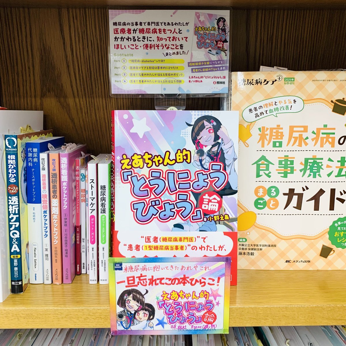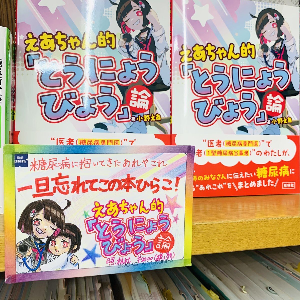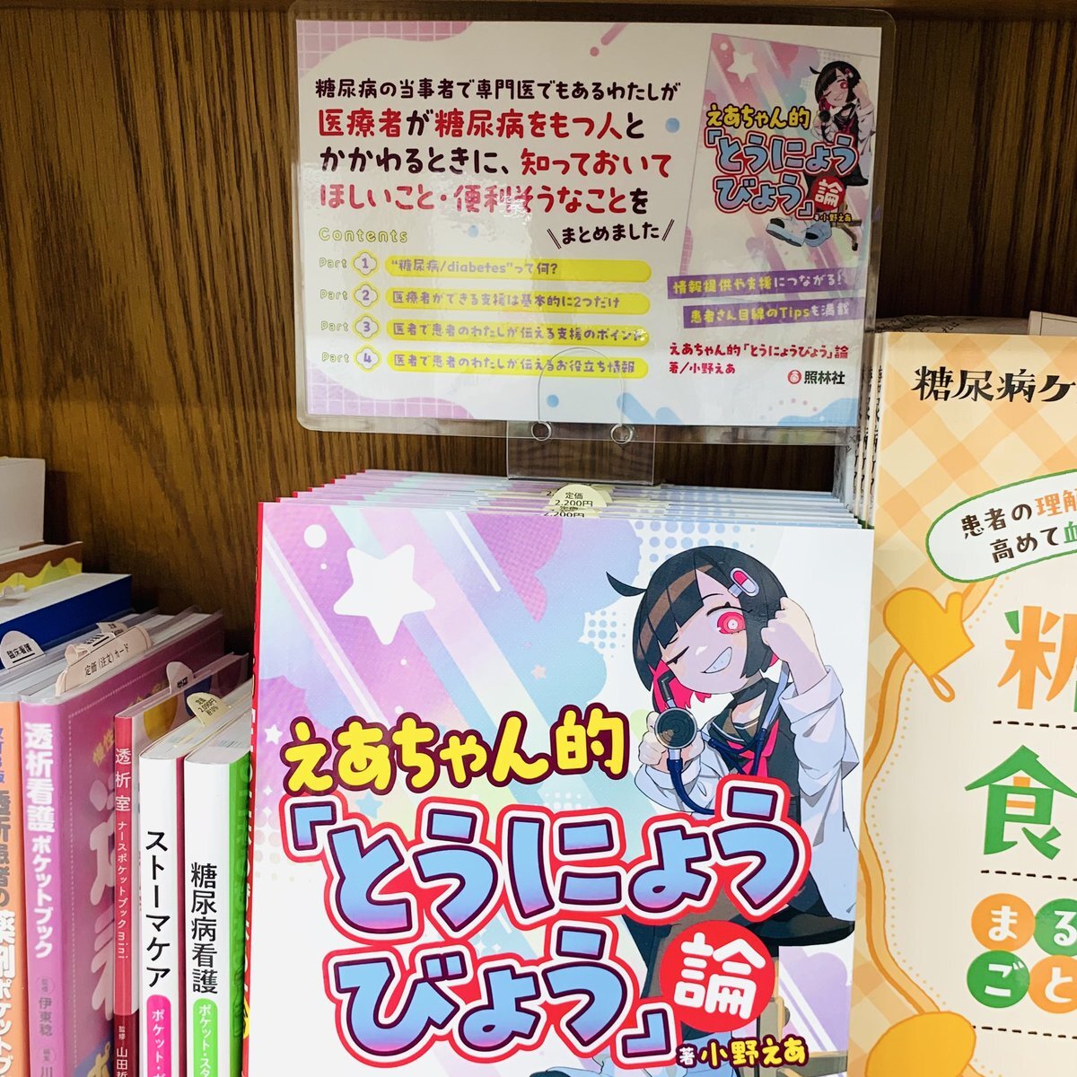 『えあちゃん的「とうにょうびょう」論』の、 #照林社 さんからいただいたPOPと新たな手書きPOPを掲出いたしました! ぜひ売り場でご覧ください😁 6F-B08にて🩺mk #糖尿病 @Ins_dependentDM @shorinsha pic.x.com/mXCcW4pHcs
