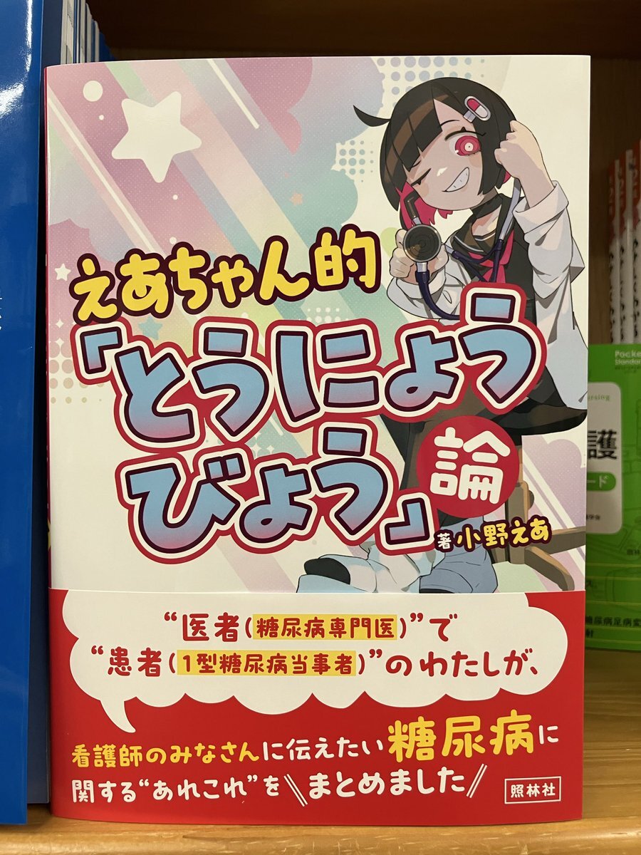 照林社から新刊が入荷しています✨ 糖尿病専門医でありながら、1型糖尿病患者でもある小野えあさん‼️ 新しい糖尿病本です☝️☝️ 看護師は勿論、患者さんにもおすすめしたい1冊です🙌 看護書コーナーまでお越しください #照林社 #糖尿病本 pic.x.com/Sdd7TyjFY3