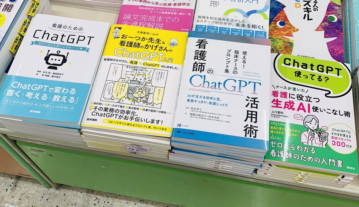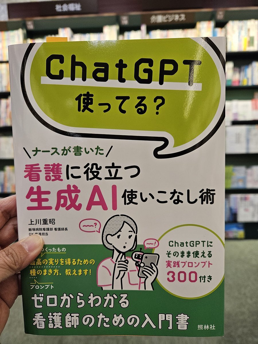 当店にも照林社から新刊が入荷‼️ 現役看護師長が書いた「看護に役立つ生成AI使いこなし術」🙌🙌 看護書にもChatGPT本が各出版社より発売されてます📓📕📚今日買って明日から使える入門書です☝️ ぜひ、試してみてはいかがでしょうか #照林社 #ChatGPT pic.x.com/DRf5doj9Qu