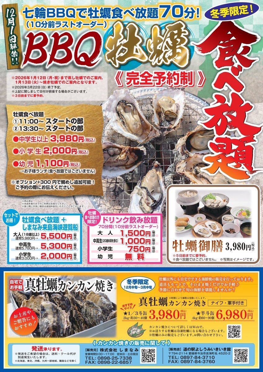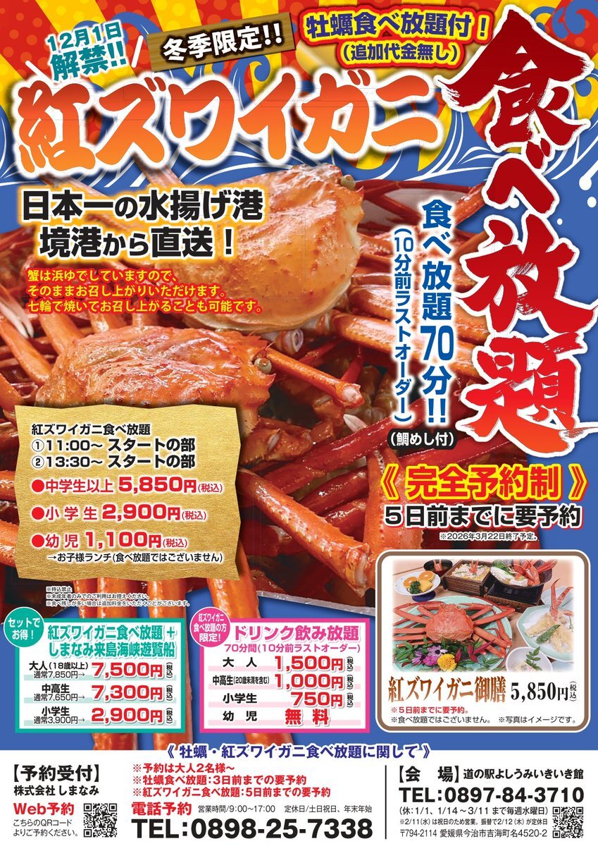 今年も始まります! #今治市 #大島、#よしうみいきいき館 で #BBQ【#牡蠣の食べ放題】! 今年は【#紅ズワイガニの食べ放題】も開催します!🦀 #冬季限定!旬の味をぜひ味わってみてね! 12/1〜開催予定で、予約制です 詳細・ご予約はHP↓にて🎵 imabari-shimanami.jp/sengyo/ #牡蠣 #紅ズワイガニ pic.x.com/qJ1KayjVVc