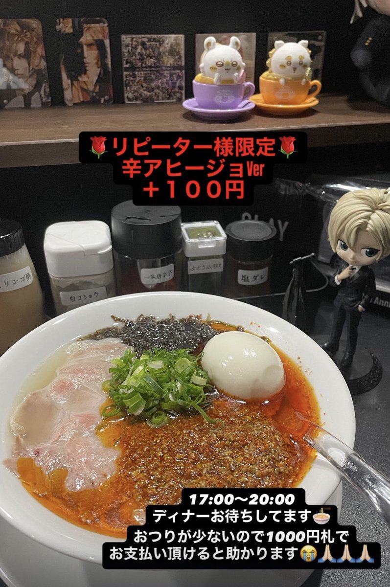 ディナー17:00〜20:00 よろしくお願いいたします🌹🍜 【1000円札】不足中💦 ご協力お願いいたします🙇🏻♀️ 札幌や遠方から来てくださる方も毎日いらっしゃり貴重な函館グルメの一食分を割いて下さり感動です😭 辛アヒージョVer🌶挑戦者求む🌶 #函館 #ラーメン #牡蠣 #牡蠣塩ラーメン #函館ディナー pic.x.com/7IWpFy9DXa x.com/hakodate_ramen…