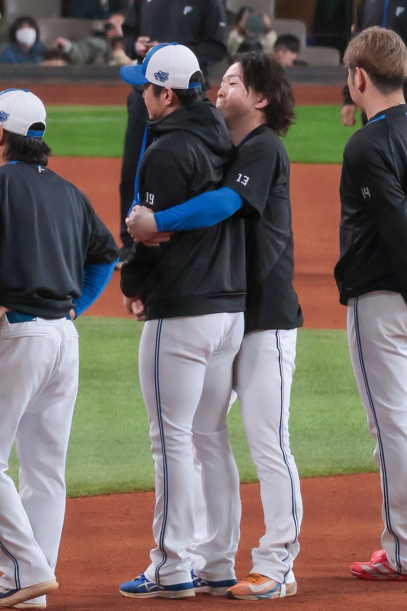 後ろに立ってた鍵谷さんを横に呼び、 急にくっついて(←オレ発狂案件)何かに対して差し出したwwww 何してんのwwww 2025/11/09 エスコン秋季キャンプ #生田目翼 投手 #鍵谷陽平 さん pic.x.com/vjuWksUiKG