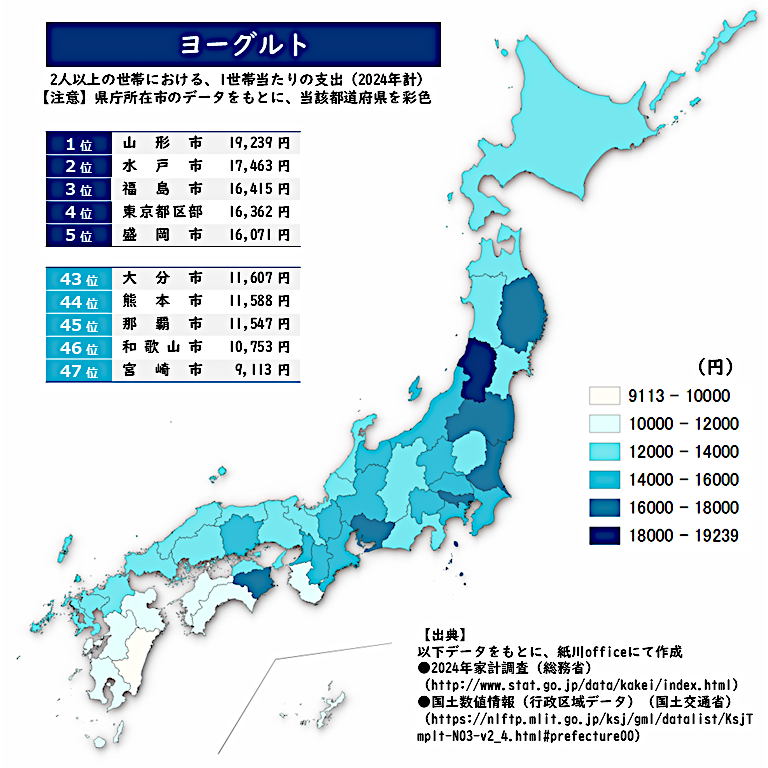正解は・・・ <ヨーグルト> 山形市がトップ! 今日はカスピ海ヨーグルトの日。 気づけばブルガリアばかりだったので、買ってみようかな 今日もたくさんのリプありがとうございます。 よい夜を! ★ファミマビジョンで出題中★ gate-one.co.jp/news/info/8326/ #ヨーグルト #地理 #GIS #クイズ #統計 pic.x.com/E3KJlmDFbP