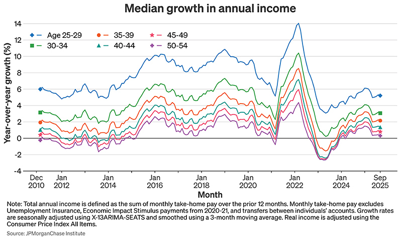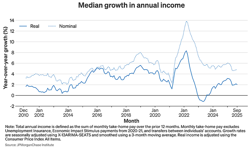 米国の実質賃金がY2Yで2%上昇レベルに逓減。労働市場に敏感な若年層ですら5%の伸びに止まり、コロナが明けても賃金上昇が回復していないのが実態。インフレにより購買力が減少し、「高くて家やモノが買えない」実感は統計的にも正しい。 #JPMorganChase #投資 #統計 jpmorganchase.com/institute/all-… pic.x.com/bDsTI0FoQP